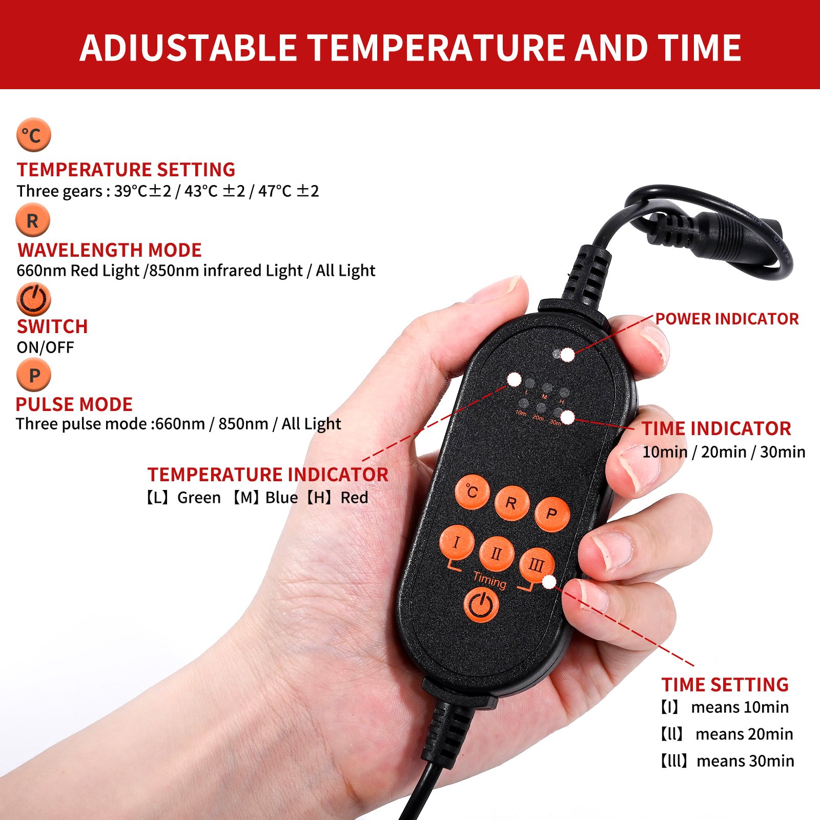 – 850nm near-infrared (NIR)  for deep-tissue penetration, muscle recovery, joint relief, and cellular energy (ATP) activation.