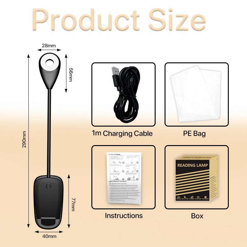 [PRODUCT QUALITY GUARANTEE] FCC, CE, RoHS approved. Worry-free & hassle-free 12-month warranty with friendly customer service. Product Box Contains Book Light x1, USB-C cord x1, User Manual x1. . NOTE: NO ADAPTER INCLUDED.