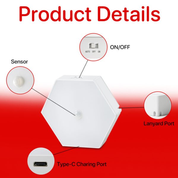 The motion night light comes with a 3M magnetic attached back to stick to the wall, and a hanging attachment to hang on the wall, or it can be simply placed down on the floor