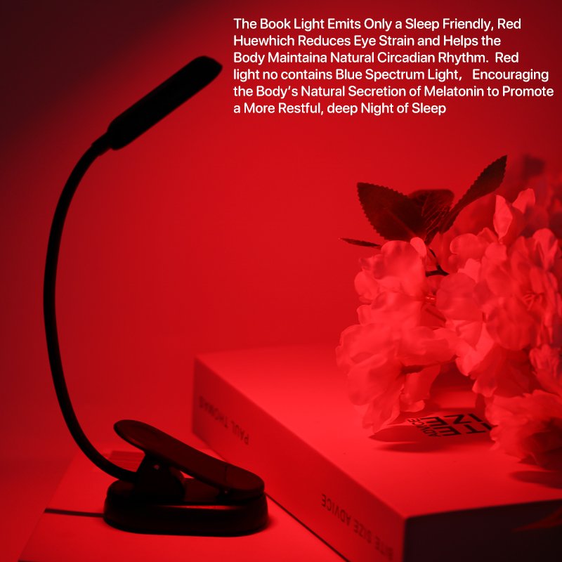 Healthy Red 625~630 nm Eye Friendly Mini Clip-On Book Light Flexible LED Reading Light Easy Comfortable Use Book Lamp
